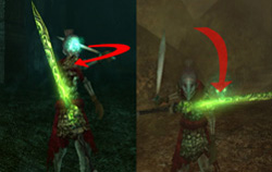 Horizontal Special Technique : Works best for enemies spread out. It is executed by swinging the sword from left to right or vise versa while power is activated on the sword. (Hold A button)